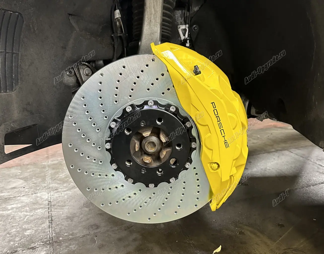 Тормоза Porsche вентилируемые и перфорированные.