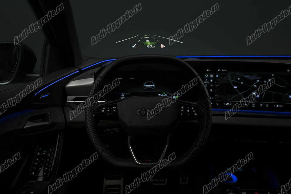Проекция данных Audi A6 E-TRON на лобовое стекло-показаний скорости, навигационных данных,показаний круиз контроля и ночного виденья,температуры масла,ограничения скорости и передачи АКПП