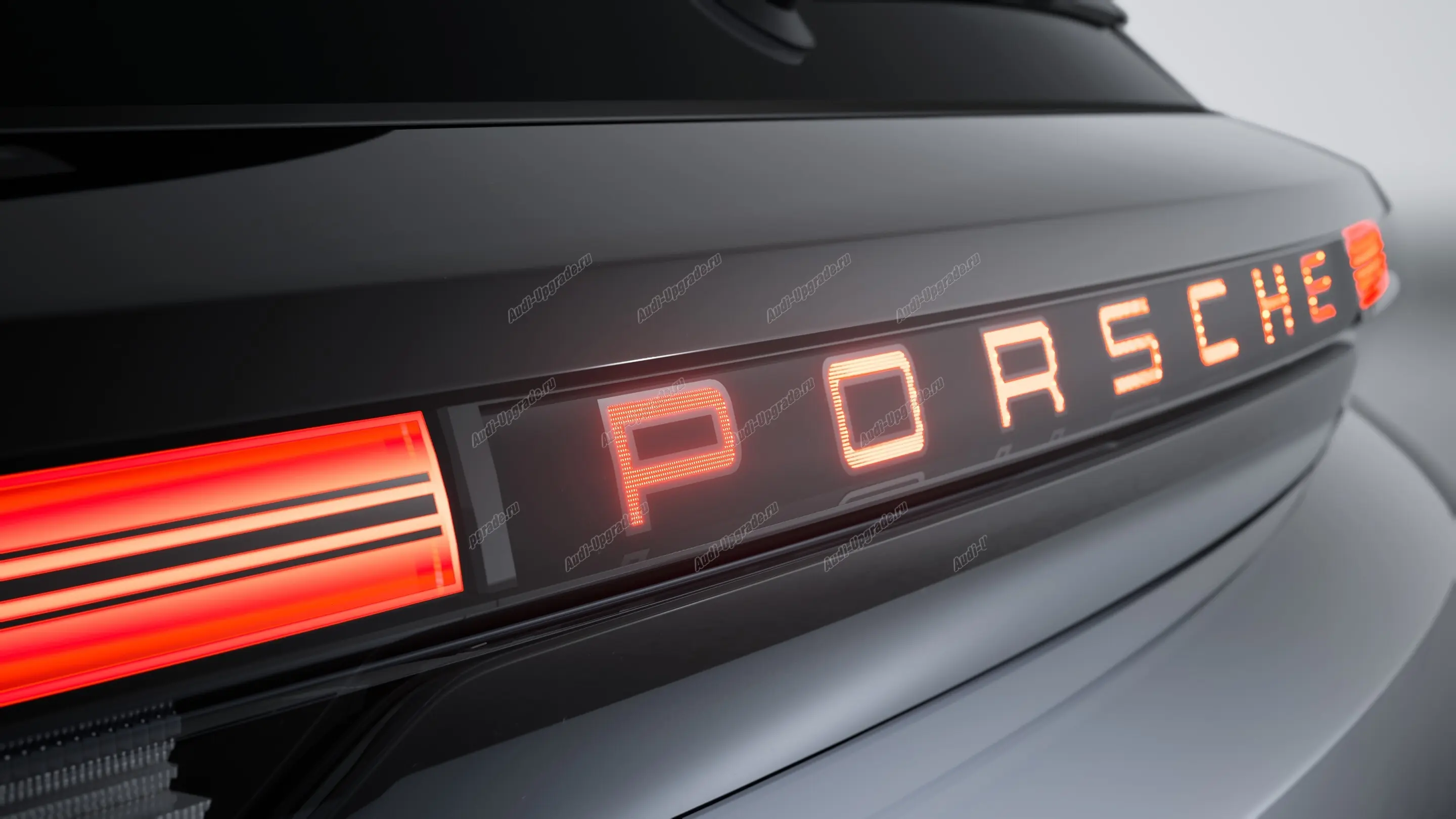 Световая полоса с затемненной надписью "PORSCHE"